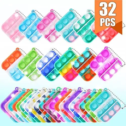 🔹 Perfect Gift Choice: 32 pcs Mini pop keychain will be fashionable for child Birthday gifts, Easter basket, Halloween,Christmas stocking stuffers, Children’s day novelty gifts, office toys and more!