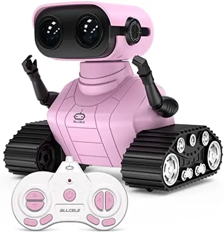ALLCELE Robot Toys, Rechargeable Kids RC Robots for Girls & Boys, Remote Control Toy with LED Eyes & Music, for Children Age 3+ Years Old – Pink