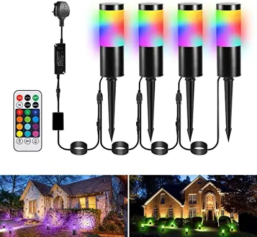 【Timing Memory function & safety low voltage】The RGBW garden lighting built-in 6H Timer and power-off memory function can be used with your outdoor power supply, it will keep the same color and mode you selected last time when you open again, saving your time. 12V low working voltage garden lights with a UK transformer(Included) – plug and play, no risk of overheating or burning, CE RoHS FCC approved, safer than high voltage lighting and stabler than solar path lights.