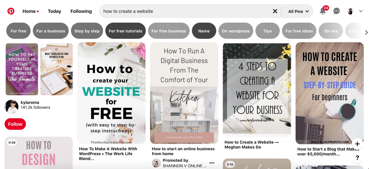 Yararlı çözümler, fikirler veya ilham verirseniz, markanıza ve ürünlerinize / hizmetlerinize güvenen büyük bir takipçiye sahip olabilirsiniz. Veya hızlı bir şekilde takipçi kazanmasanız bile, pinlerinizi arama için optimize ederseniz, içeriğiniz ideal kitlenizin önüne kolayca geçebilir. Bu, markanızın güvenilirliğini sağlar ve sizi rakipleriniz arasında bir otorite olarak ayırt eder.