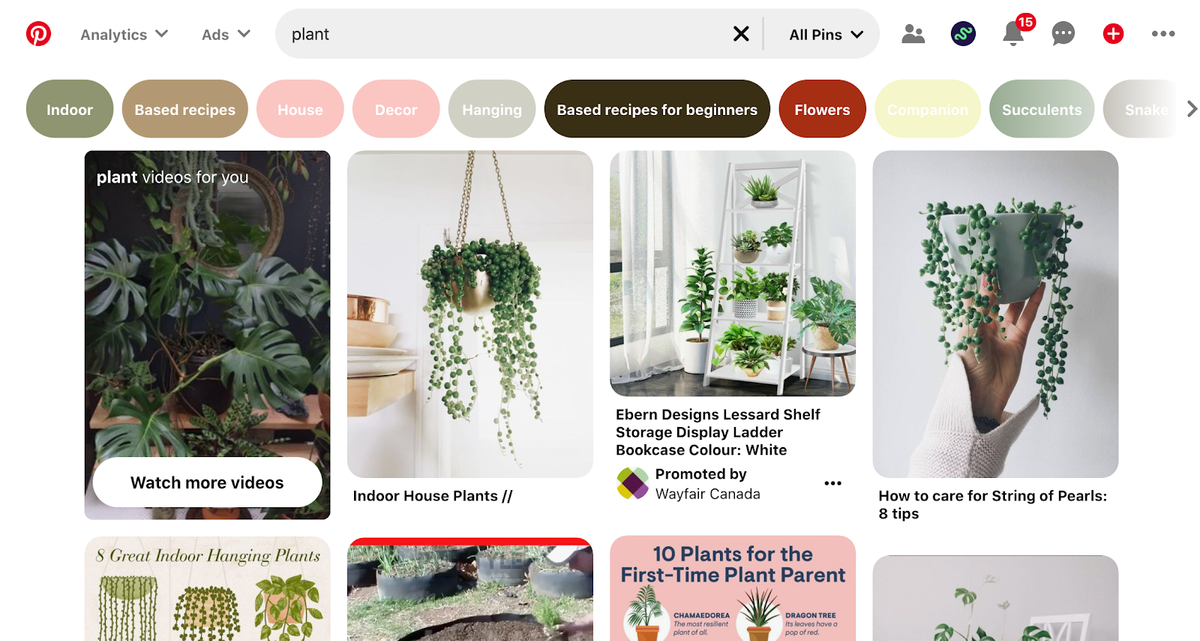 Ayrıca “bitki” gibi tek bir anahtar kelime girebilir ve altında ne olduğunu görebilirsiniz. Esasen, bu anahtar kelimeler “bitki bazlı tarifler” ve “asılı bitki” gibi bir kelime öbeğine dönüşecektir.