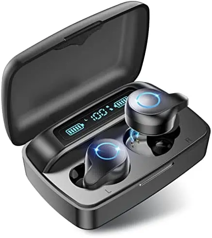 Up to 156H Playtime:This Bluetooth earbuds is equipped with built-in 85mAh battery which can last 10-12 hours after a single full charge. 2200mAh portable rechargeable case can recharge Bluetooth earbuds about 13 times that boasts outstanding up to 156H playtime. Moreover this charging case can serve as power bank for your phone or other devices in emergence.