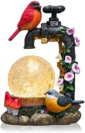 TERESA’S COLLECTIONS Robin Bird Garden Ornaments with Solar Lights, Waterproof Faucet Bird Garden Statue Ornament with Crackle Glass Ball Outdoor Figurines for Patio Lawn Yard Autumn Decorations, 21cm