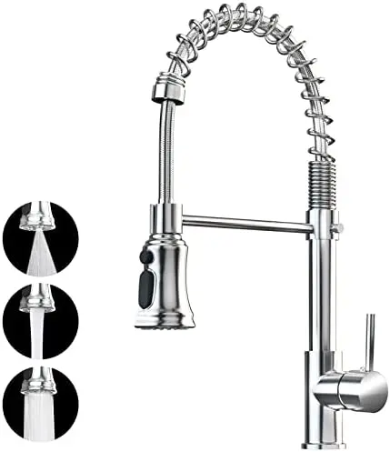 【DUAL FUNCTION STREAM & SPRAY】 Our kitchen tap has 3 spray modes (Stream, Spray-Strong/Normal).You can switch back and forth between the stream and spray by clicking the button on the spout. Easily help complete a multitude of kitchen tasks, wash vegetables and dishes